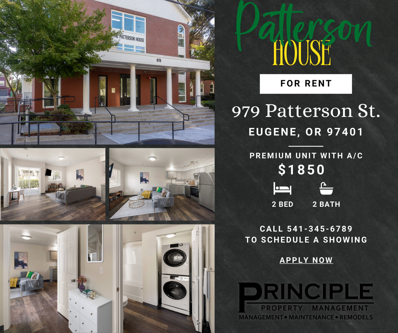 This home is offered by Principle Property Management. For showings, please call 541-345-6789. The open application period for this rental begins January 27, 2026 and closes when the approved applicant places their deposit to hold the unit.