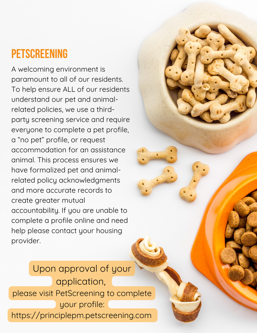 Upon approval of your application, please visit PetScreening to complete your profile: https://principlepm.petscreening.com